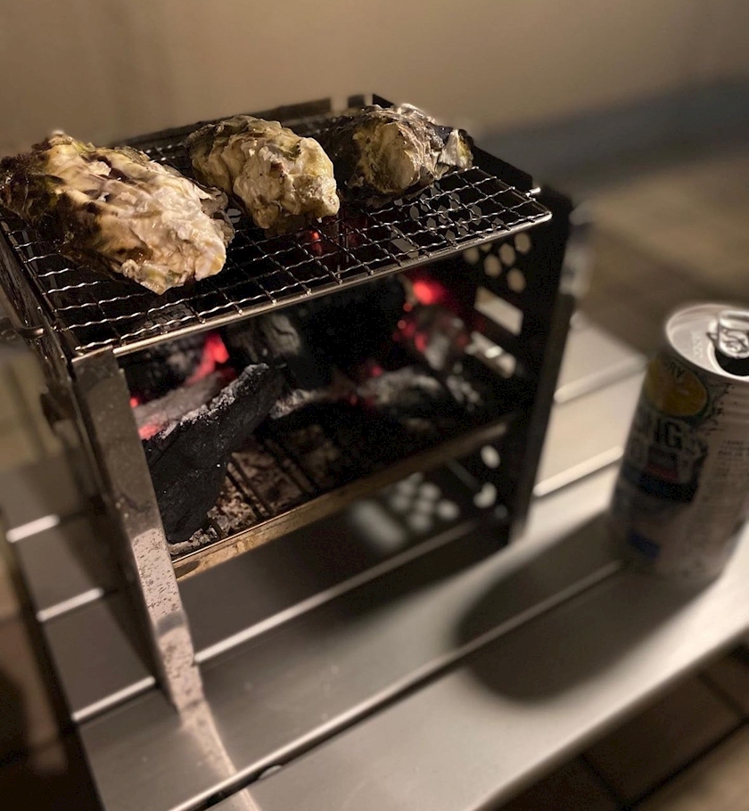 大好きな牡蠣を焼きながら