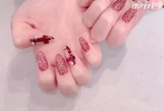 赤ベースカラーで可愛いい系のネイルが