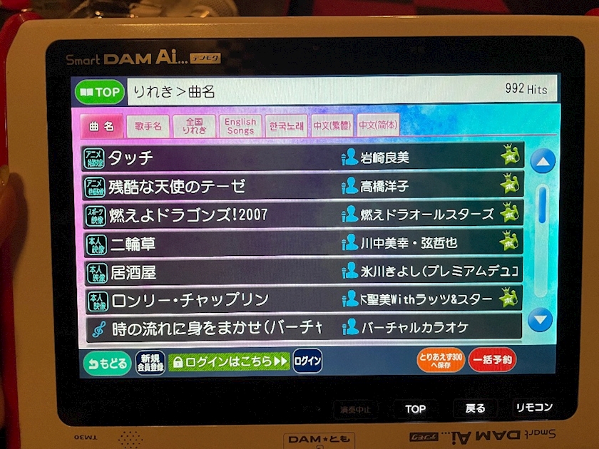 この日のカラオケ履歴