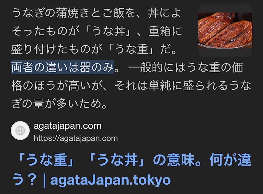 鰻丼と鰻重の違いってなんなんだろう。