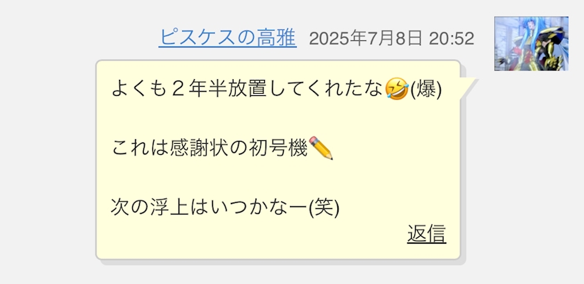 即コメントしたら返信これな。