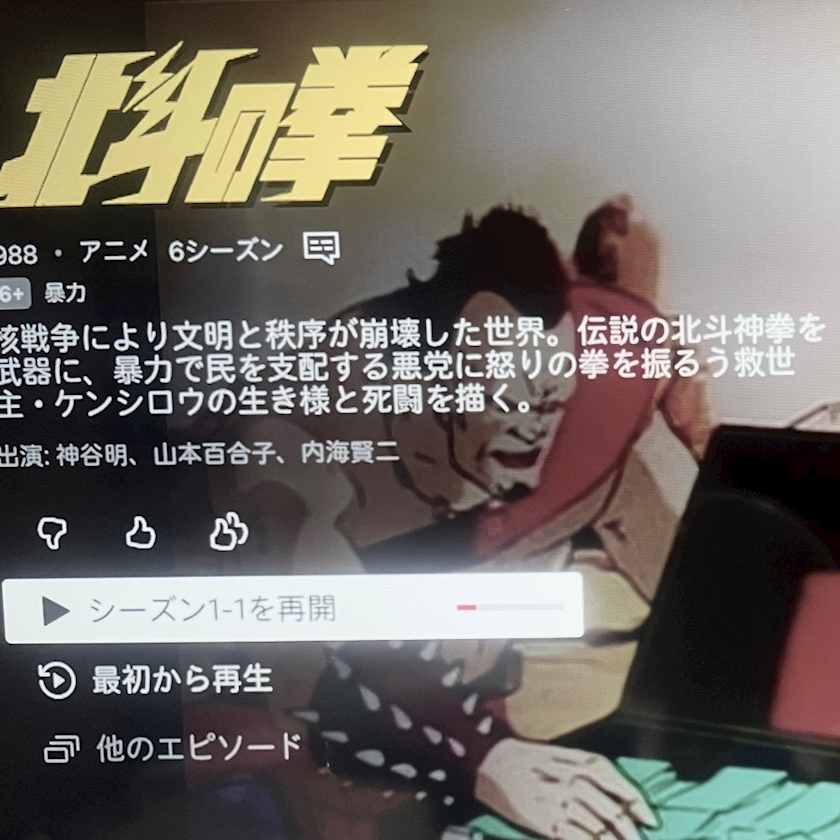 北斗の拳を見始めたよー😊