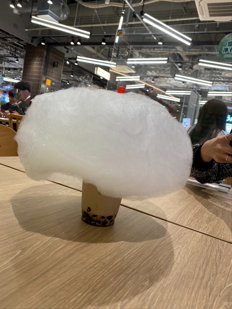 タピオカに綿菓子がついてるやつにするか