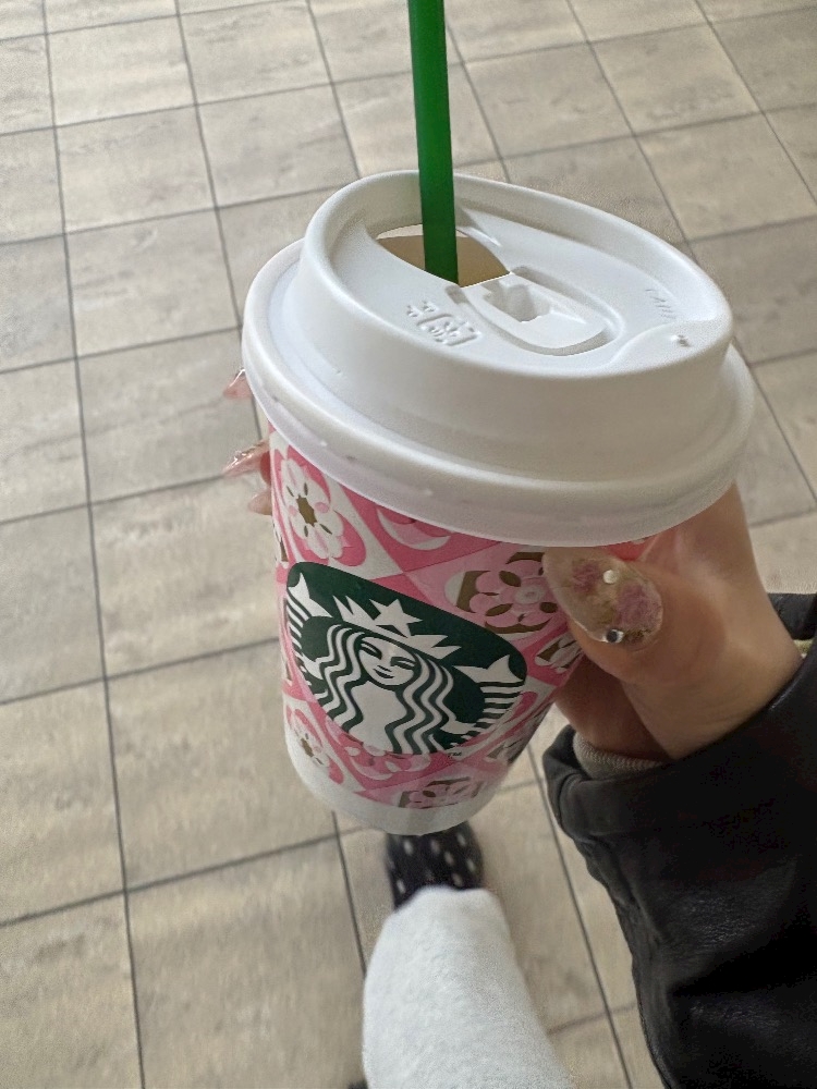 新幹線乗る前にスタバ行ったらカップが春仕様になってた🌸💕