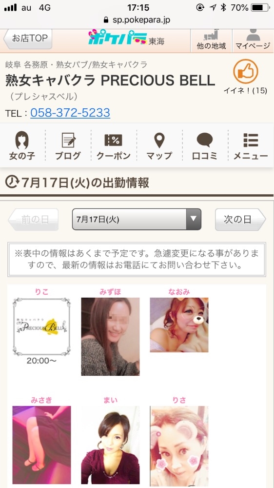 7月17日(火曜日)(´∀`) - プレベルさん - 熟女キャバクラ PRECIOUS BELL・プレシャスベル - 岐阜 各務原の熟女パブ/熟女キャバクラ