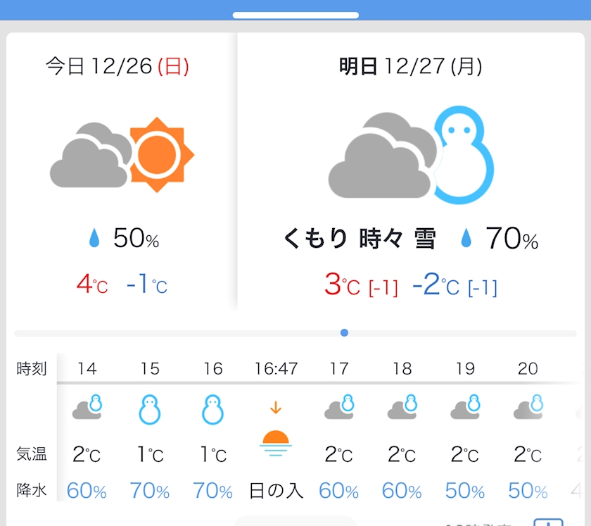 あー明日雪結構やばいらしいね?