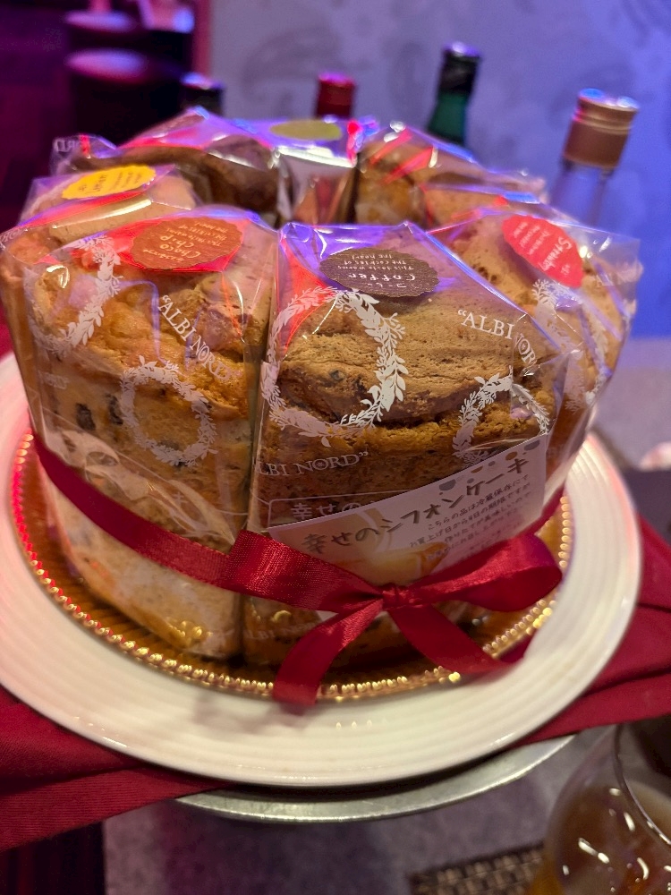 ケーキの箱手にしててみんなで食べてー
