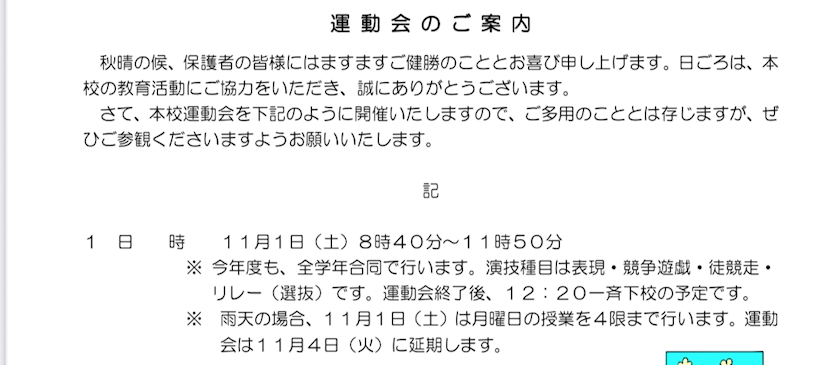 さー今週土曜日は運動会ある🎌