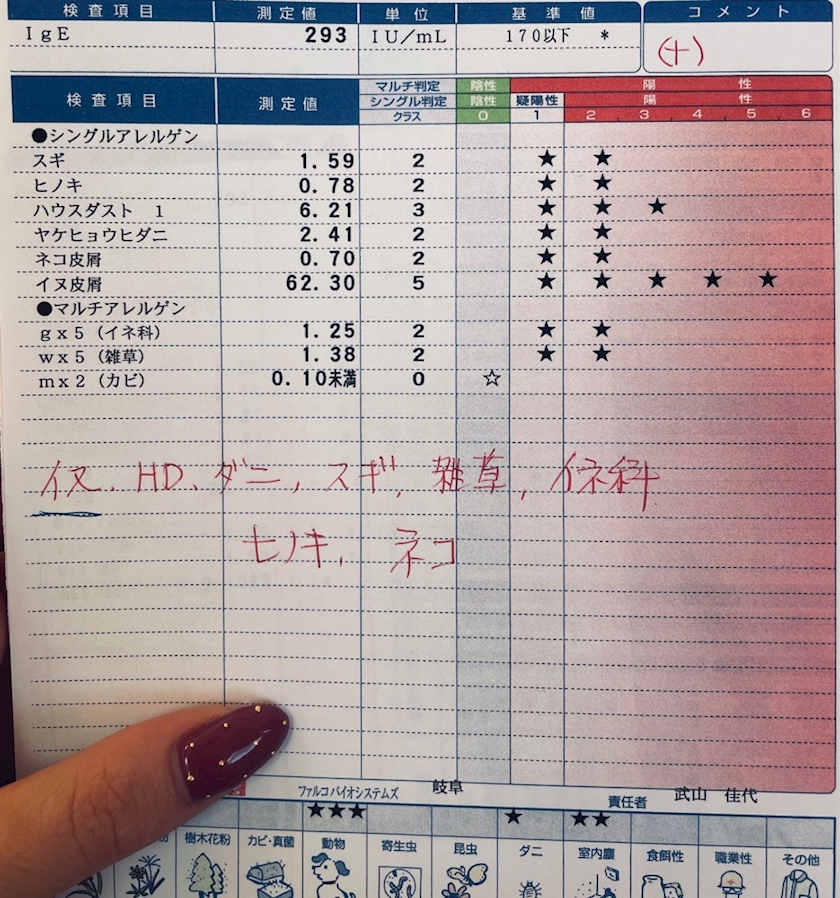 私のアレルギー検査した