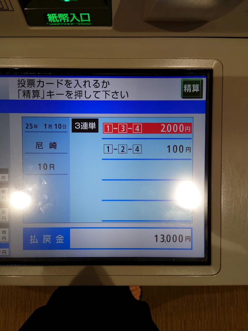 今日も1着から3着のボートを順位通りに当てる三連単で賭けた😊