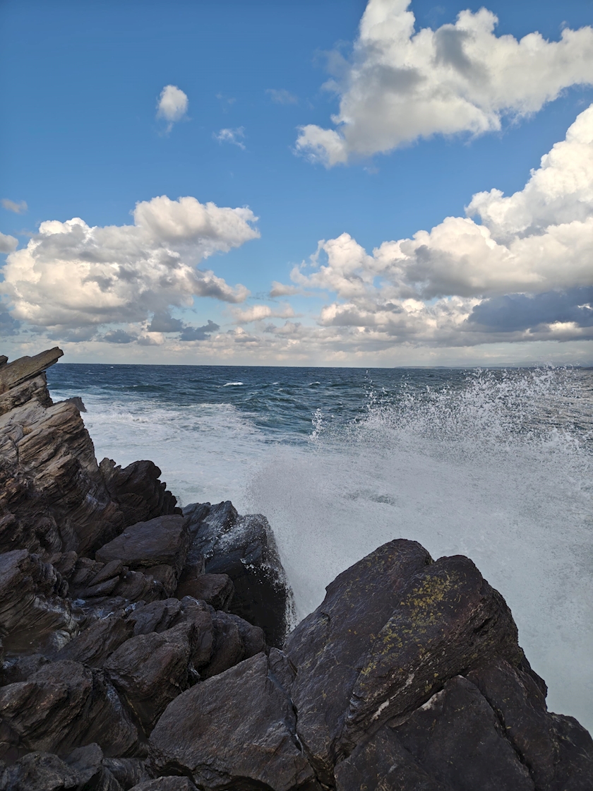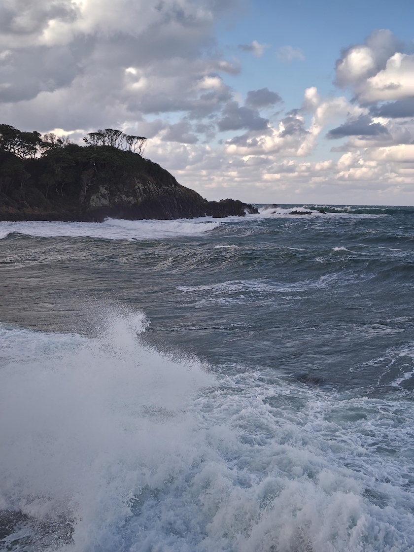 近くまで見に行ったら頭から波しぶきを浴びたぁ🌊