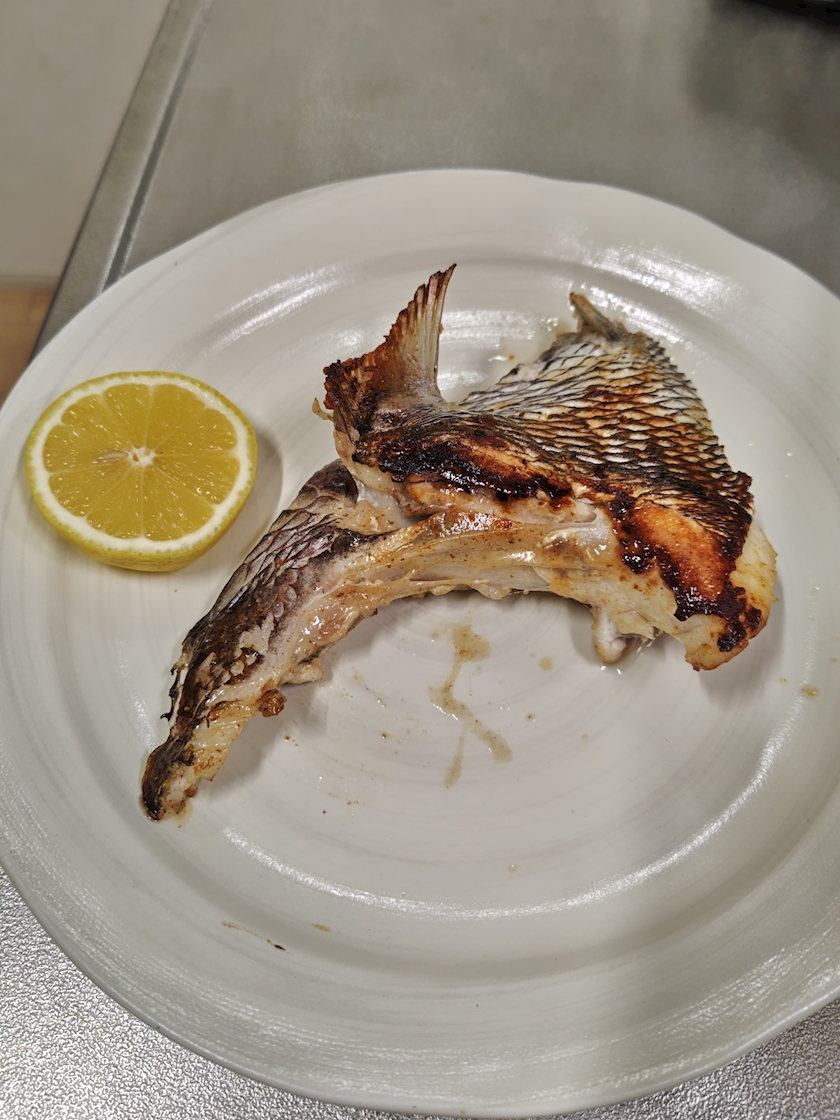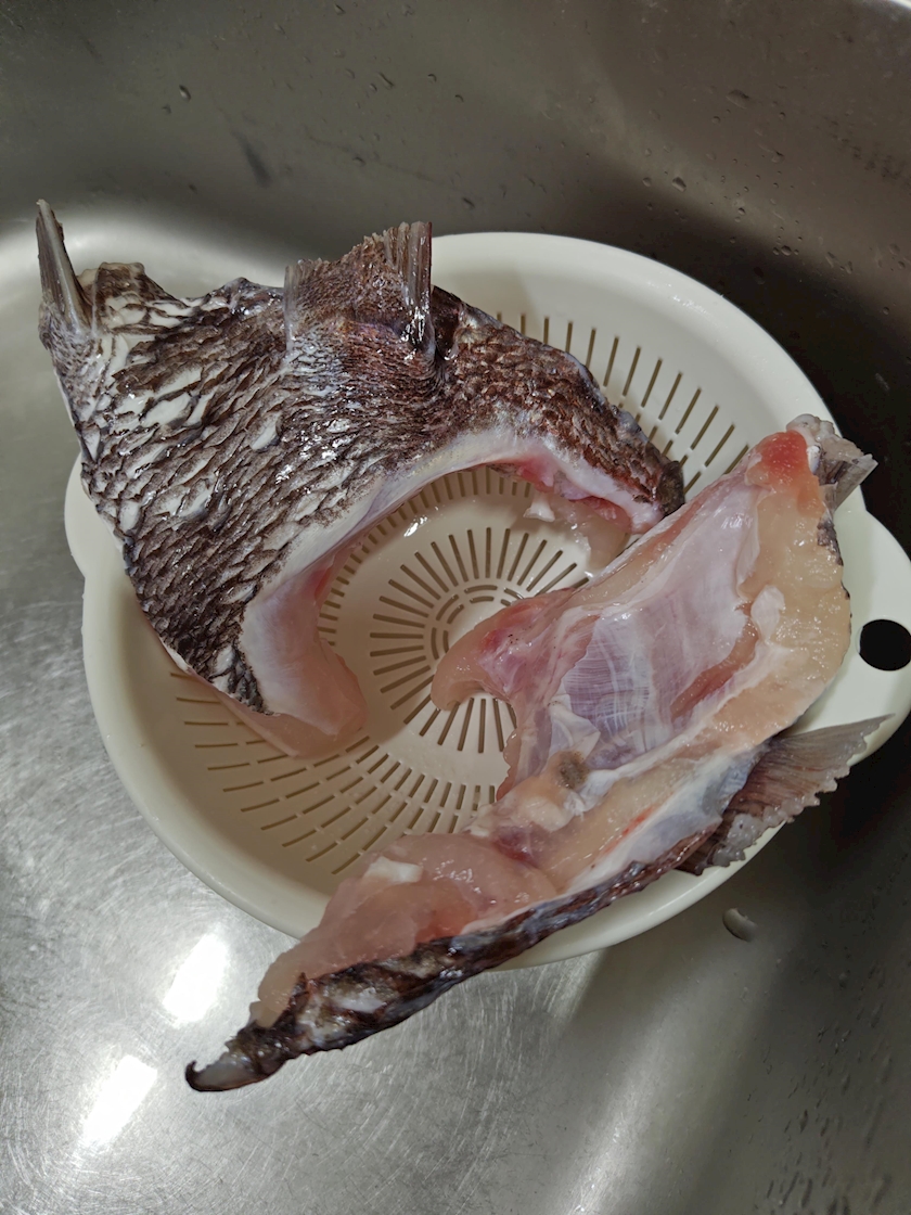 私が釣った鯛で、カマの塩焼きを作った🤍