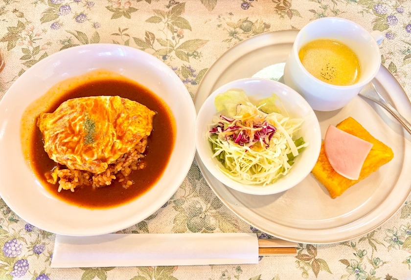 ひるめし 🍽️ 兼ぅち合ゎせ 💬🍳ォムラィス 🥗 サラダ