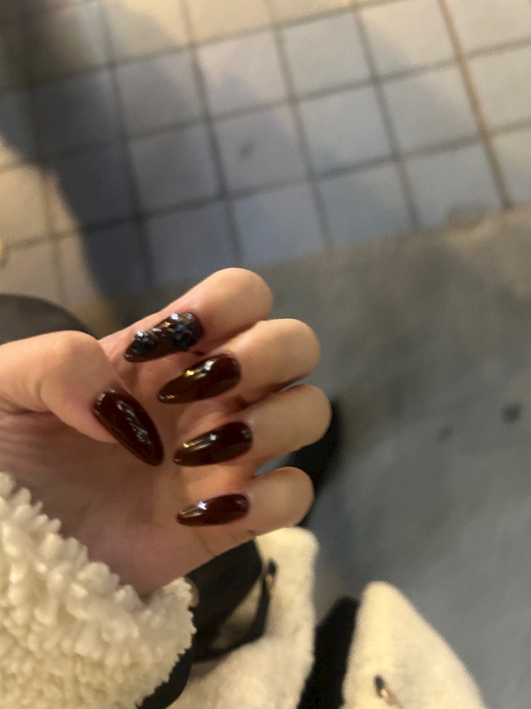 ボルドーネイルに黒の薔薇をつけちゃいました❤️🥀