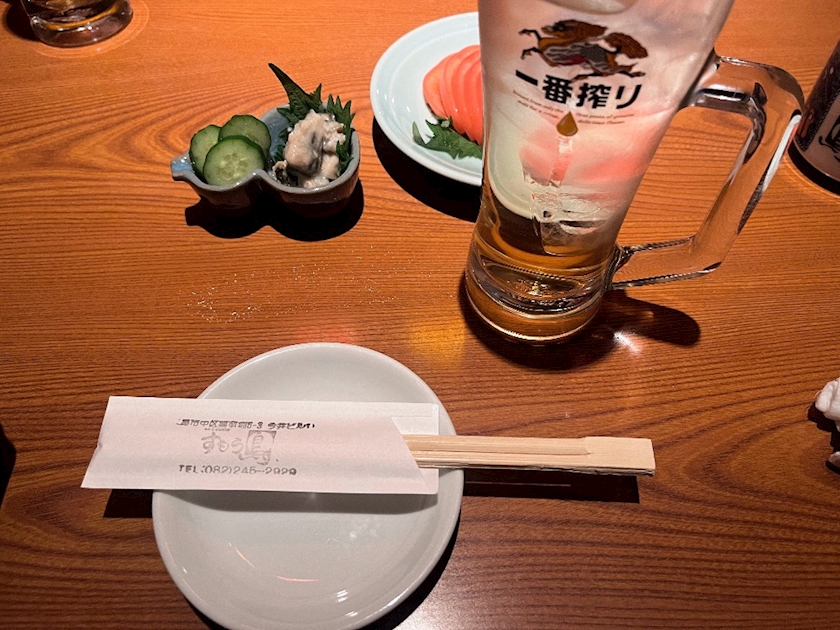 梅酒の水割りと牡蠣の塩辛を頼みました!