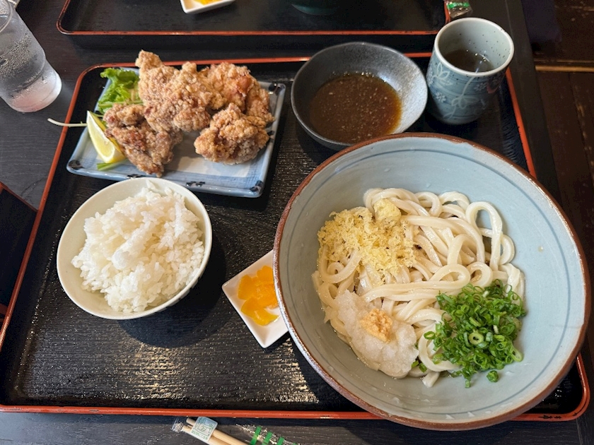 お昼ご飯はぶっかけうどんと唐揚げ👏