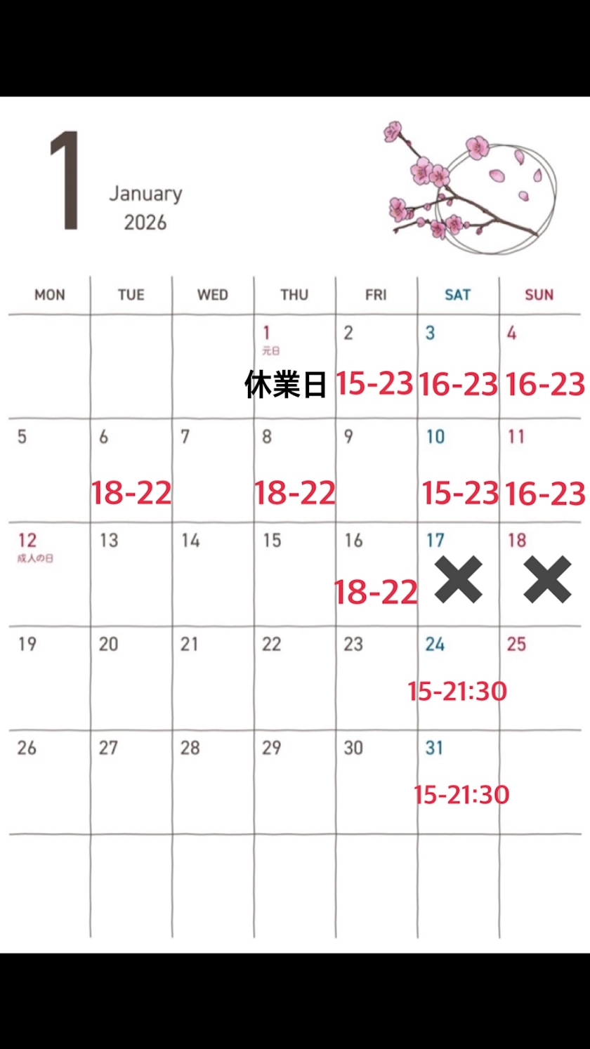 1月の出勤予定(仮)🎍 - ゆず🍋 - 彩月・サイゲツ - 広島市(流川)のキャバクラ