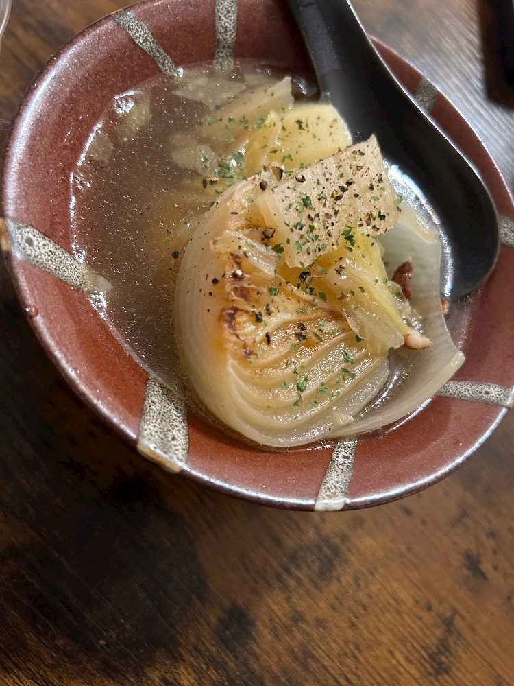お腹空いたので昨日の残りのシンタマスープ飲む。