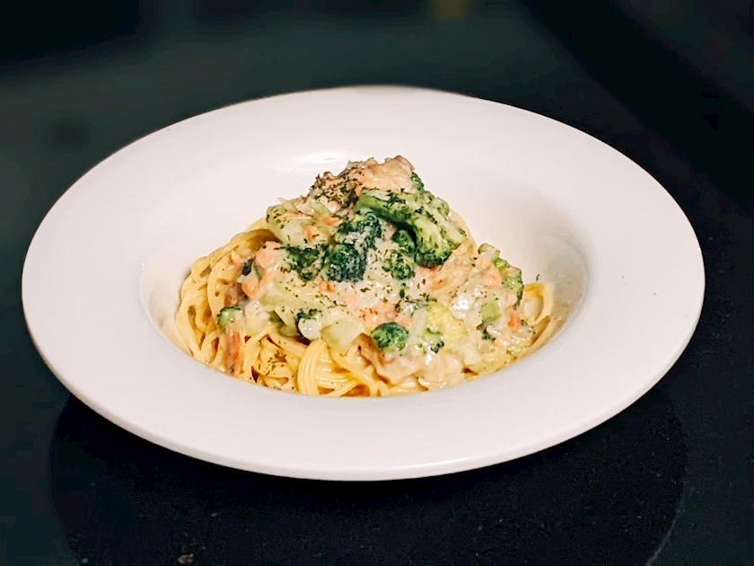 サーモンクリームパスタ食べた🍝
