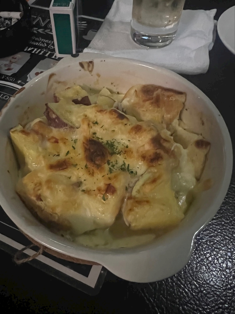 さつまいもとベーコンのパンプディングを