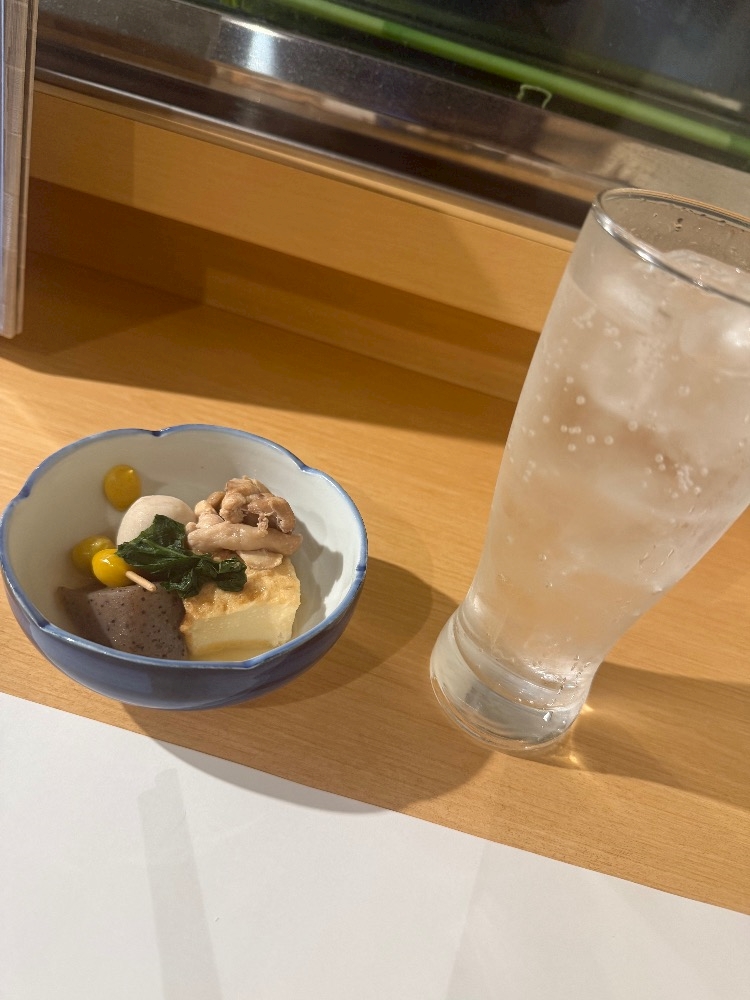 お通しにおでんはあつい👍