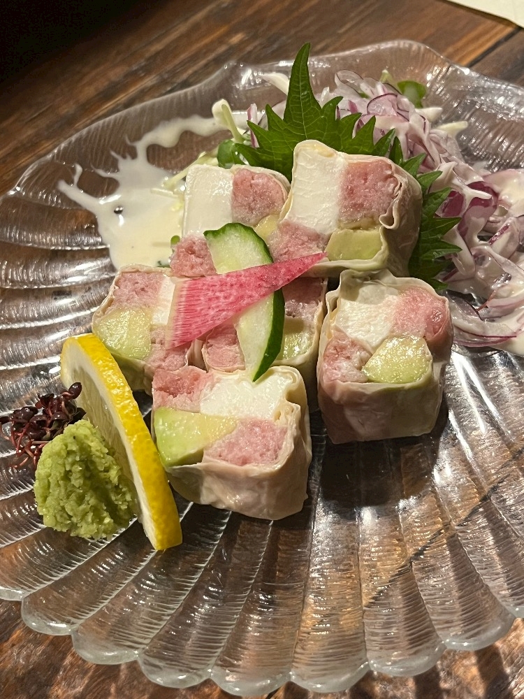 マグロとアボカドの湯葉巻