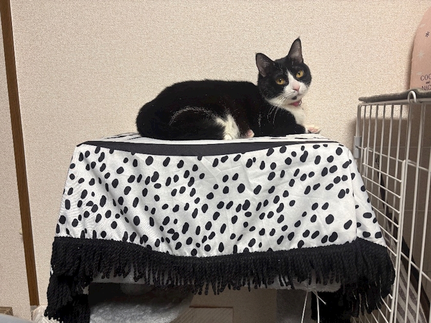 キャットタワーの上にいるんだけど