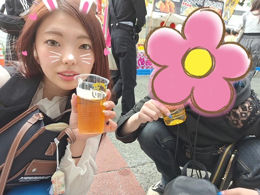 まずは可愛いお姉さんからビール受け取って😏✋(笑)