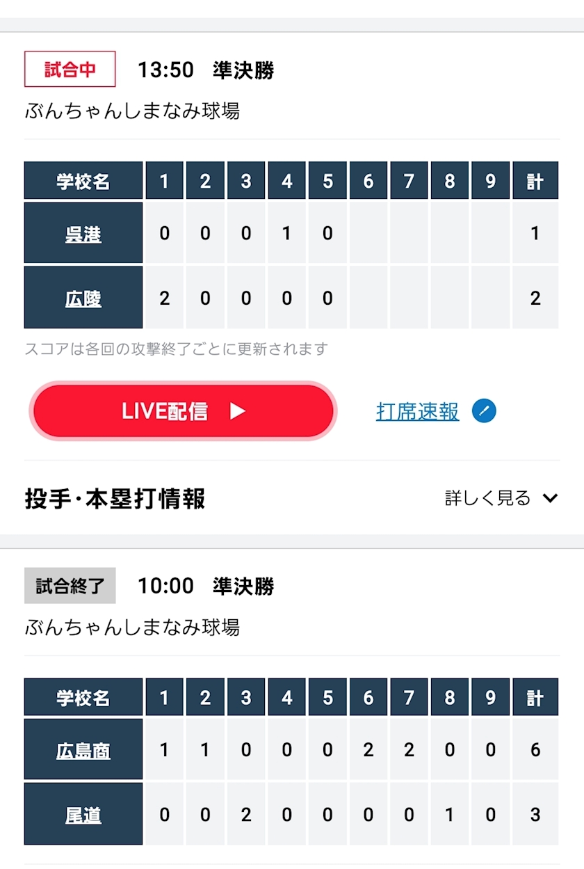 広島大会🗾準決勝の結果⚾