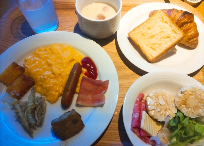 朝食はホテルのビュッフェと