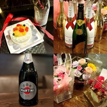 たくさんのシャンパンとお花のプレゼント