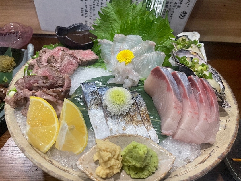 お写真はお刺身と和牛のたたきなんですけども
