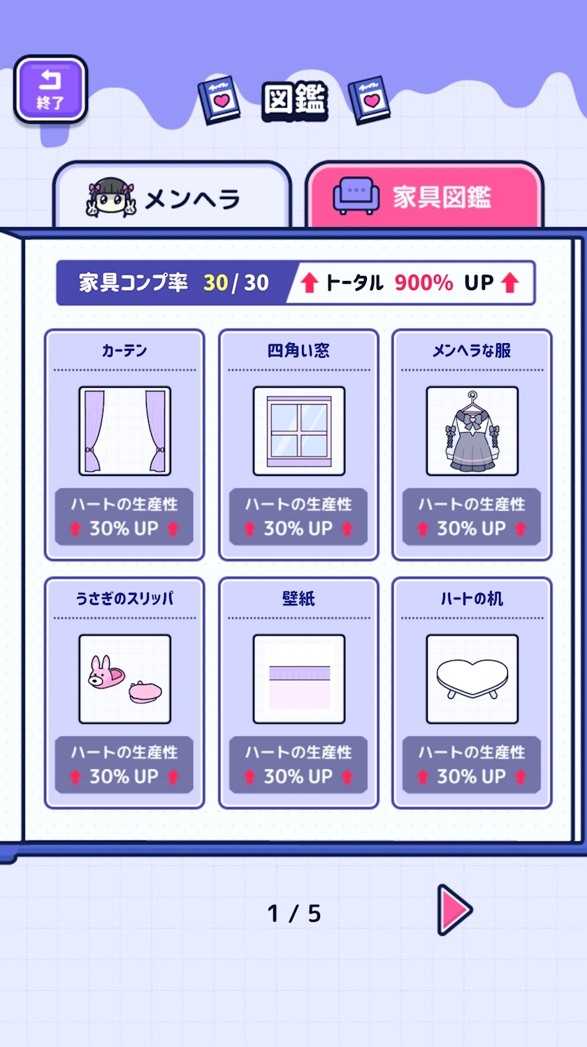 家具はハートの生産率が30%あがるから大事‼️