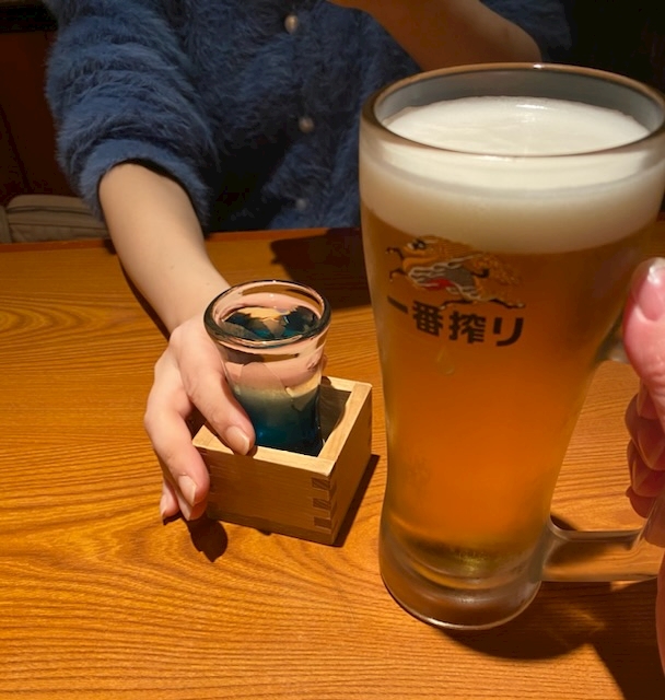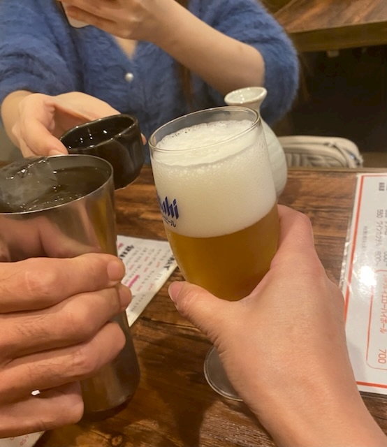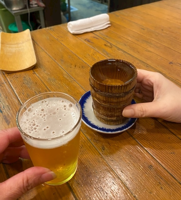 2軒目、生ビールと日本酒で乾杯🍻✨