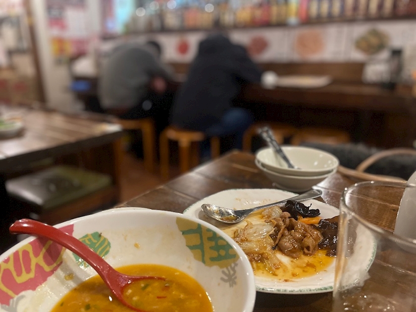 夜もだいぶ更けてきて、ラーメン食べ終わって