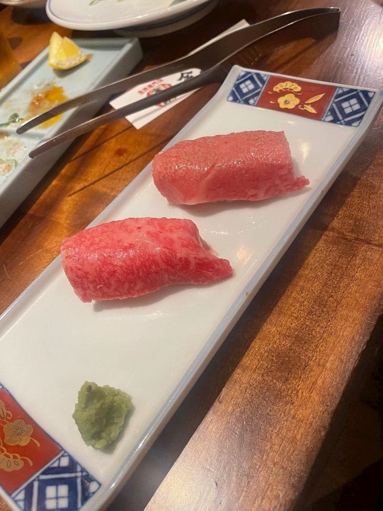 肉寿司は。炙りにしたよ〜。
