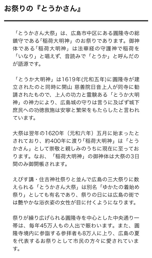 今日から3日間、広島は とうかさん です。