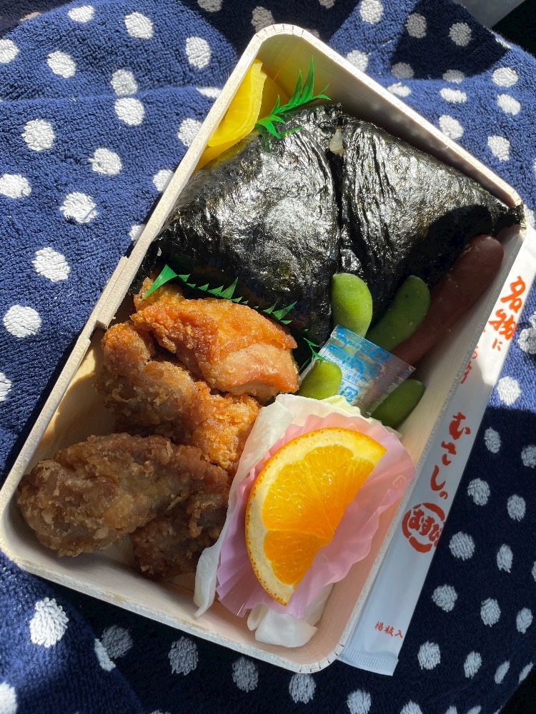 若鶏むすび弁当にしました〜。