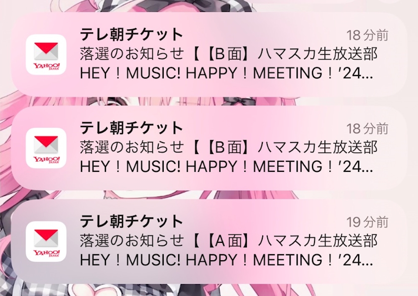 察した上で時間なってサイト見て落選だったーってなって