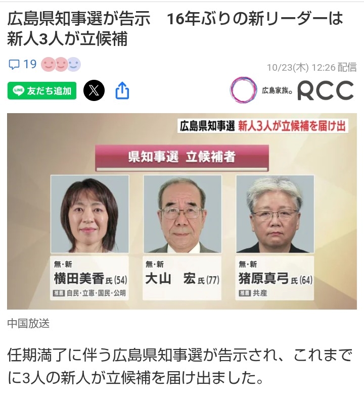 広島県知事選が眠たすぎるんやが