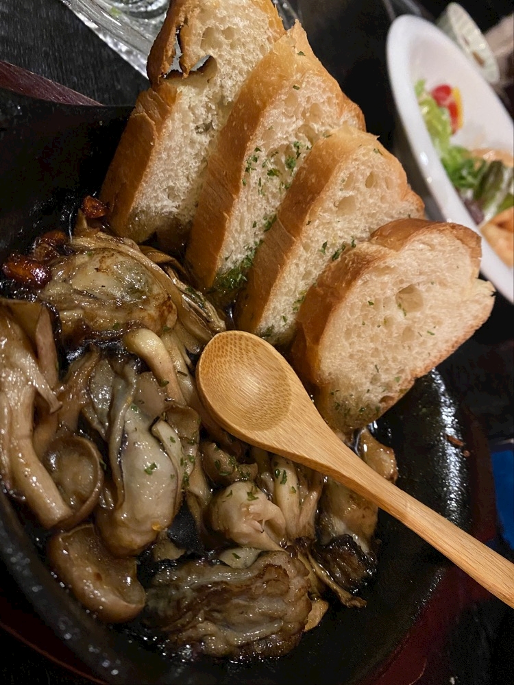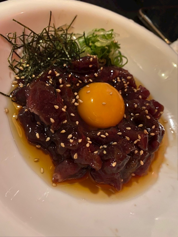 大好きなアヒージョと馬ユッケ🫶🏻