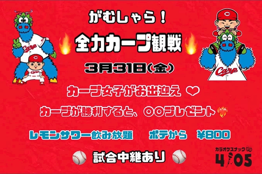 本日カープイベント⚾️❤️🔥 - 天使さな - カラオケスナック 4105 広島駅前店・ヨットコ - 広島駅周辺のスナック