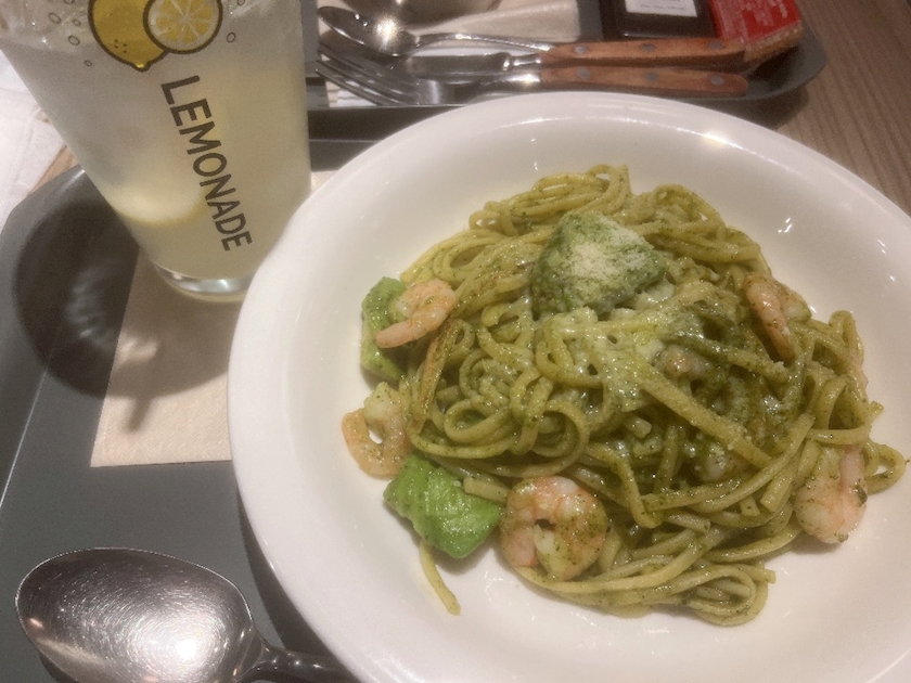 アボカドと海老のパスタとレモンスカッシュ!