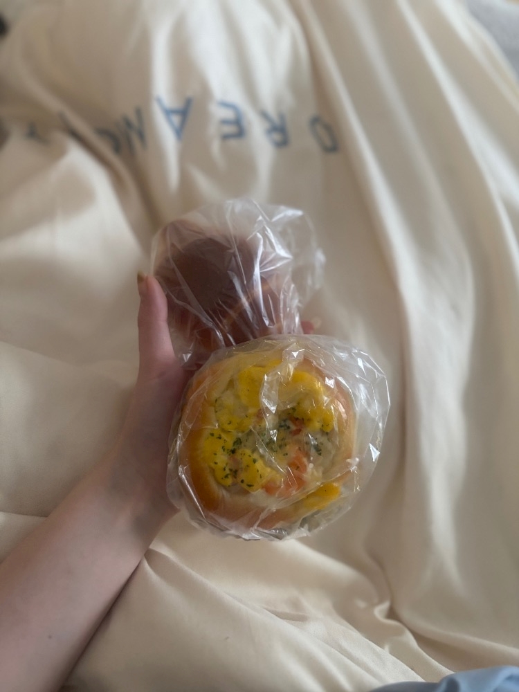 今日は朝からパン屋さんのパン食べた˃ 𖥦 ˂