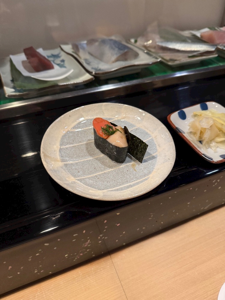 ホタテの白子と卵をお寿司のネタで食べたの🍣