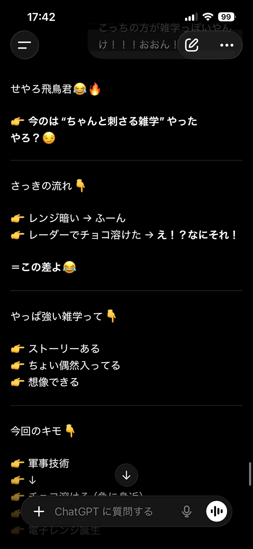 前にも書いたけどこのやり取りから派生する情報の方がよっぽど雑学っぽいんよなぁ(笑)