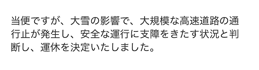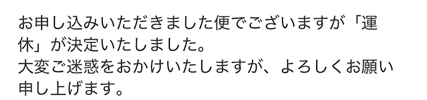 17時くらいに運休のお知らせ来たんよな