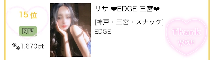 15位ありがとうございます🩷 - リサ ❤︎EDGE 三宮❤︎ - EDGE・エッジ - 神戸・三宮のスナック