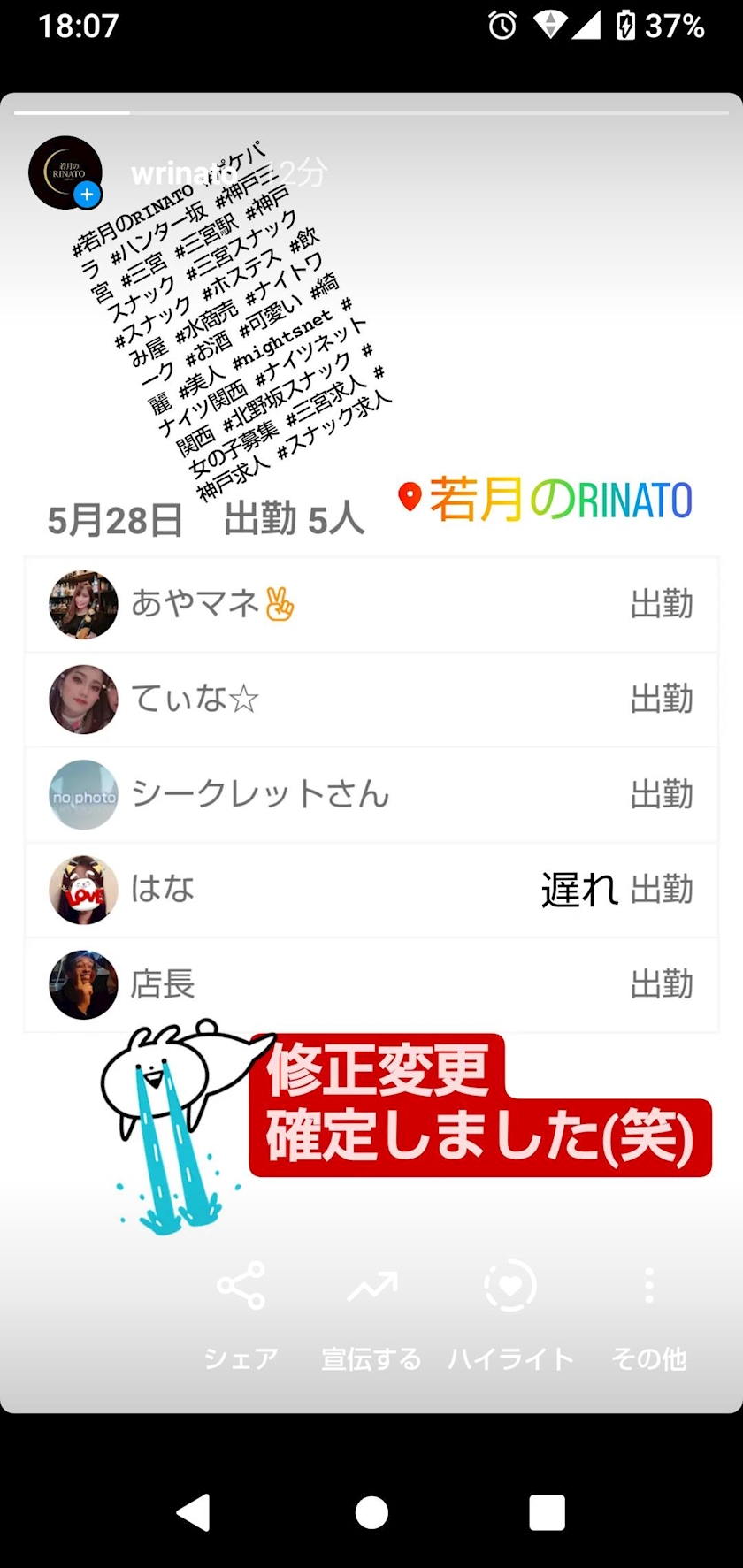 昨日は - T☆龍 - 若月のRINATO・ワカツキノリナート - 神戸・三宮のスナック
