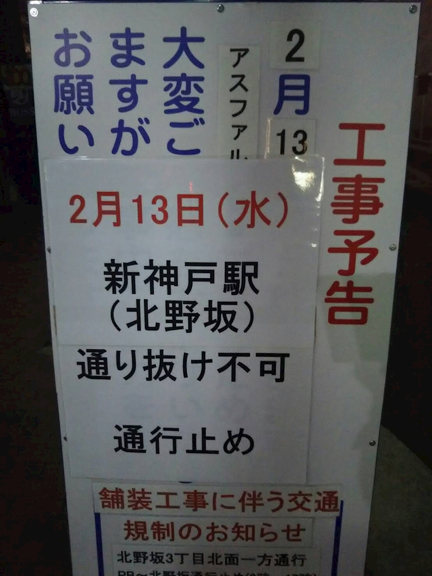 13日はハンター坂の上の方で道路工事やるみたいです